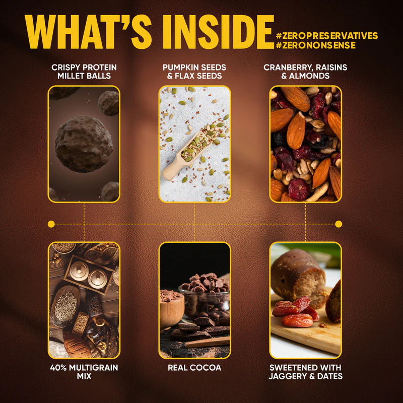 Doctor's Choice High-Protein Multigrain Muesli combines nutrition and taste in every bite, offering 22g of protein per serving to fuel your busy lifestyle. Made with 40% wholesome multigrain, this muesli-inspired snack is a rich source of dietary fibre, supporting digestion and keeping you satisfied for longer. Sweetened naturally with pure jiggery and free from Maida, palm oil, and preservatives, it’s a clean-label choice for health-conscious consumers. Perfect as a crunchy snack or breakfast option, this guilt-free indulgence delivers wholesome energy and a deliciously crisp texture to power your day with honest nutrition.
