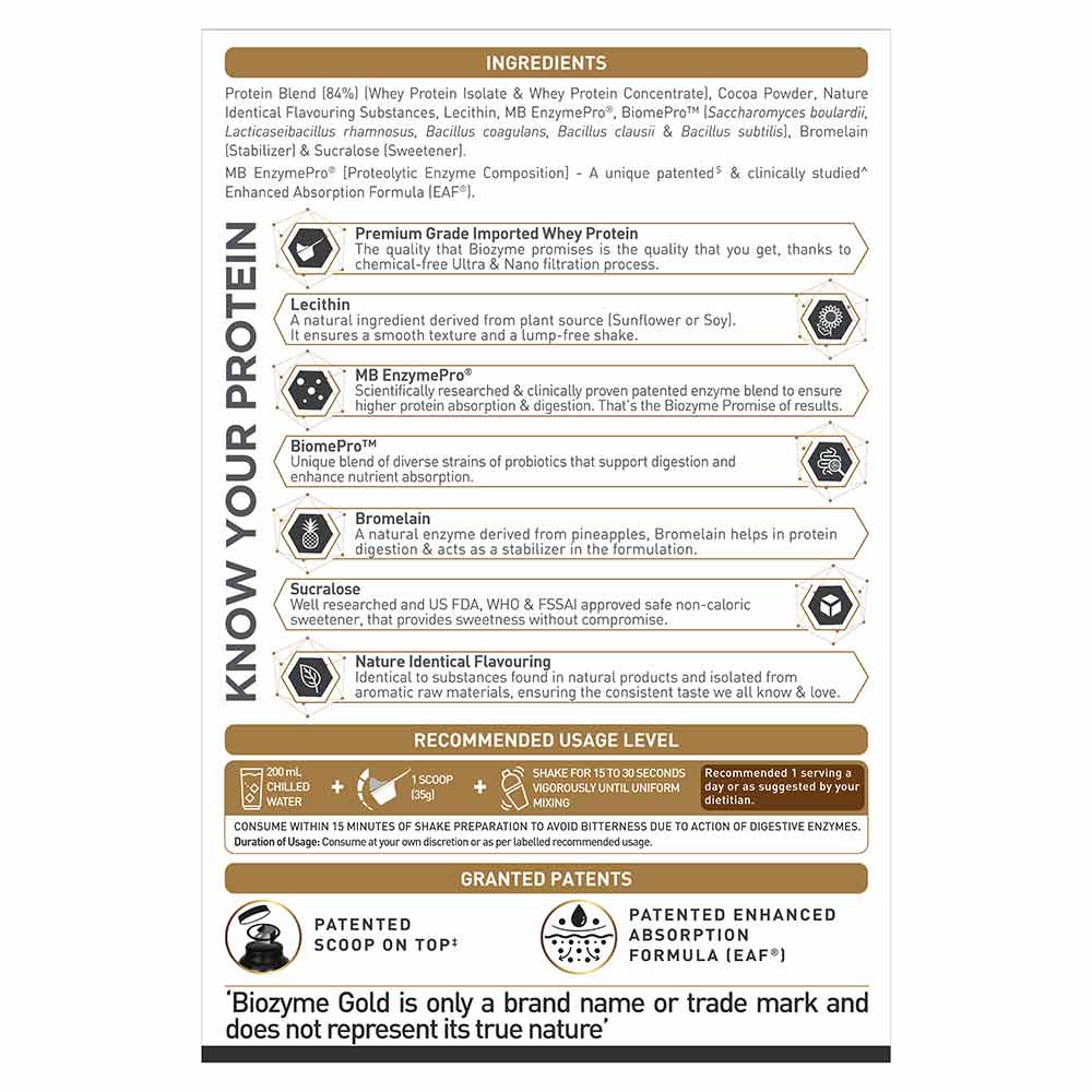 ADDED BIOMEPRO PROBIOTICS: Each serving of Biozyme Gold Whey Protein contains 1 billion CFU probiotics, supporting healthy digestion & nutrient absorption in your body.