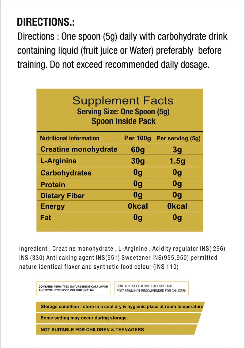 product.description.Crea Crush is a combination of creatine monohydrate & l-arginine. Creatine is known to provide energy to muscles and can increase muscle power & speed, during intense repeated exercise bouts from olympia nutrition on amazon. Health supplement for intense muscular exertion to be used with proper exercise and diet program. Especially suitable for athletes.
